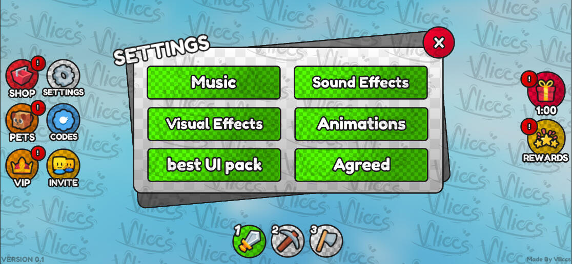 I'm Vliccs, a professional UI designer with over 3 years of experience, this is a display of the Ultimate UI Pack (V0.1)